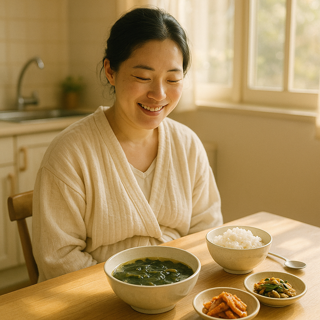 | 추천 레시피 | 쇠고기 미역국 / 단호박 닭죽 / 들깨시래기국 | 자궁 수축, 부기 완화, 영양 균형 효과 |