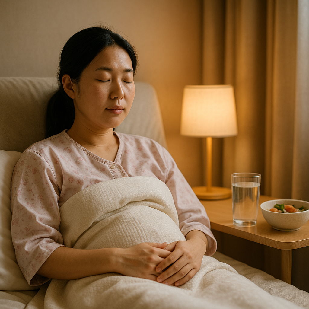 1️⃣ 출산당일 – 이불을 덮고 안정을 취한다.