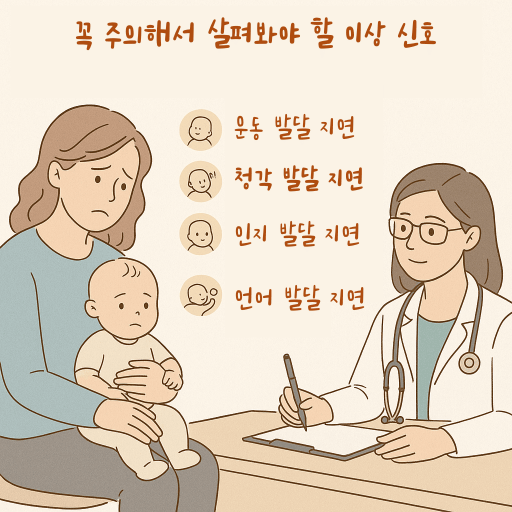 | 4개월 이후 | 목 가누기 못함 | 운동 발달 지연 가능성 |