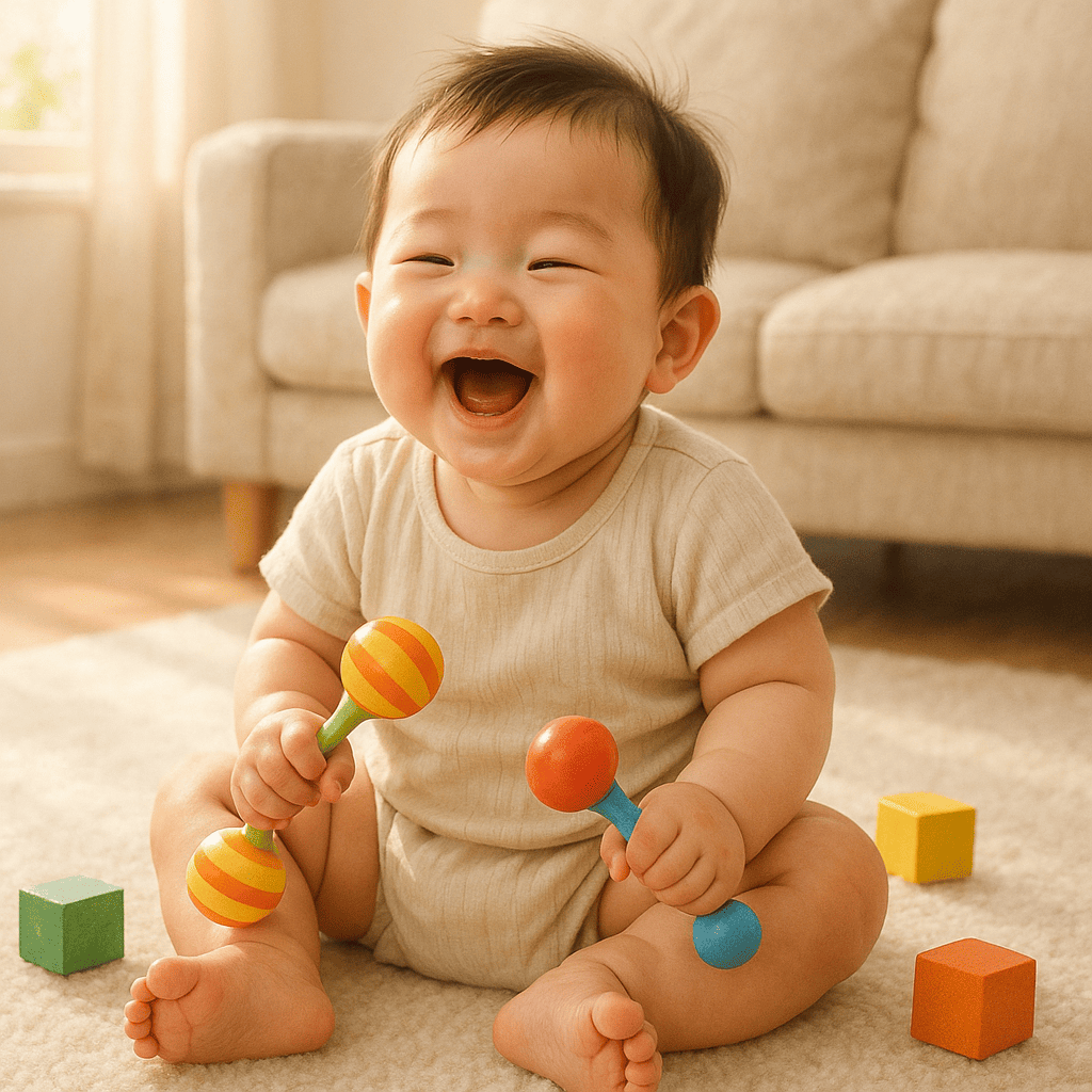 - 4~6개월: 장난감 누르면 소리 나는 등 원인-결과 이해 시작