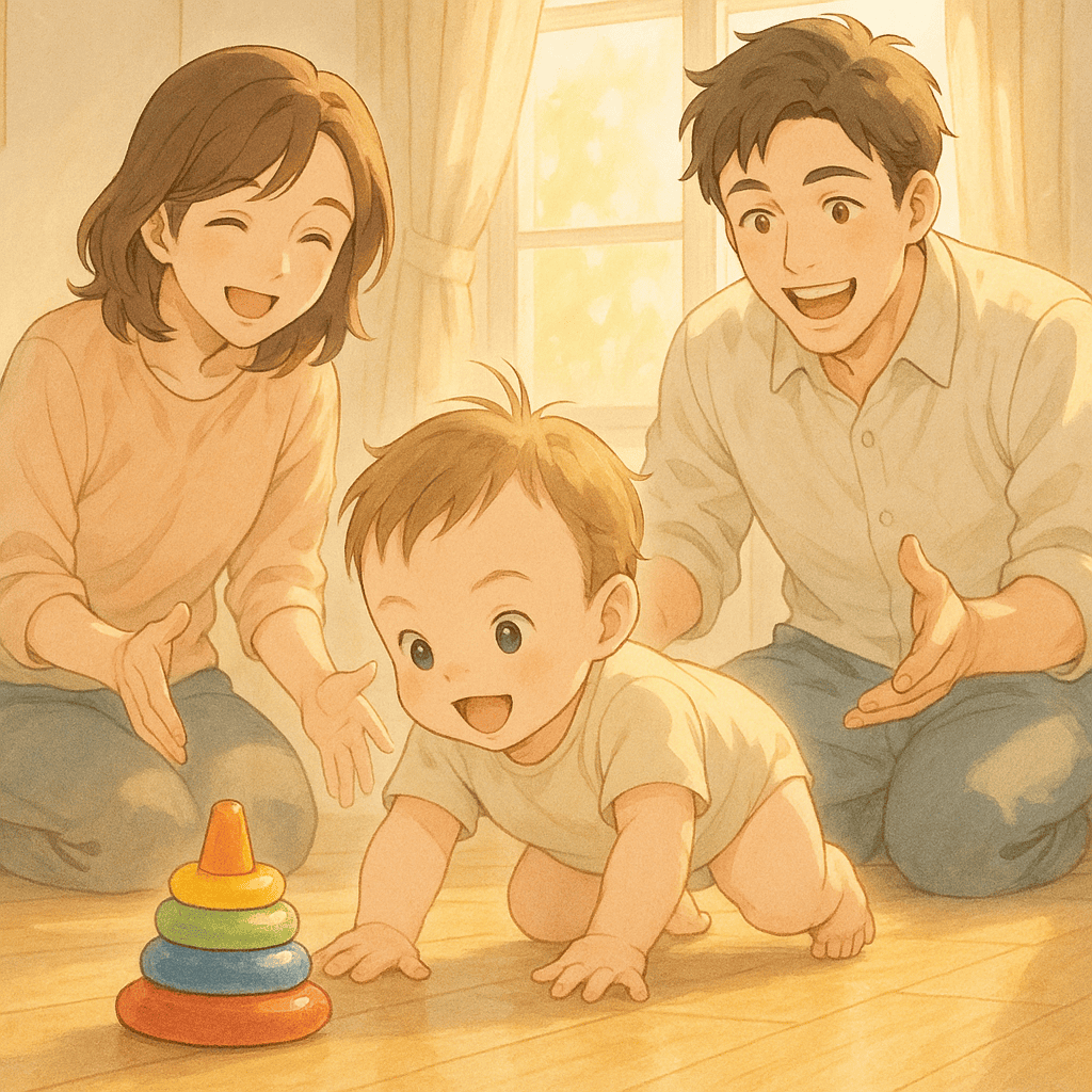 작은 전진에도 크게 칭찬해주면 아기가 더 즐겁게 시도합니다.