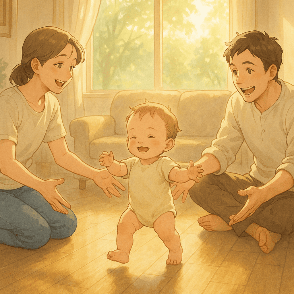 정말 감동적인 순간이네요! 아기의 첫 걸음은 단순한 동작이 아니라 부모와 세상이 함께 지켜보는 기적입니다.