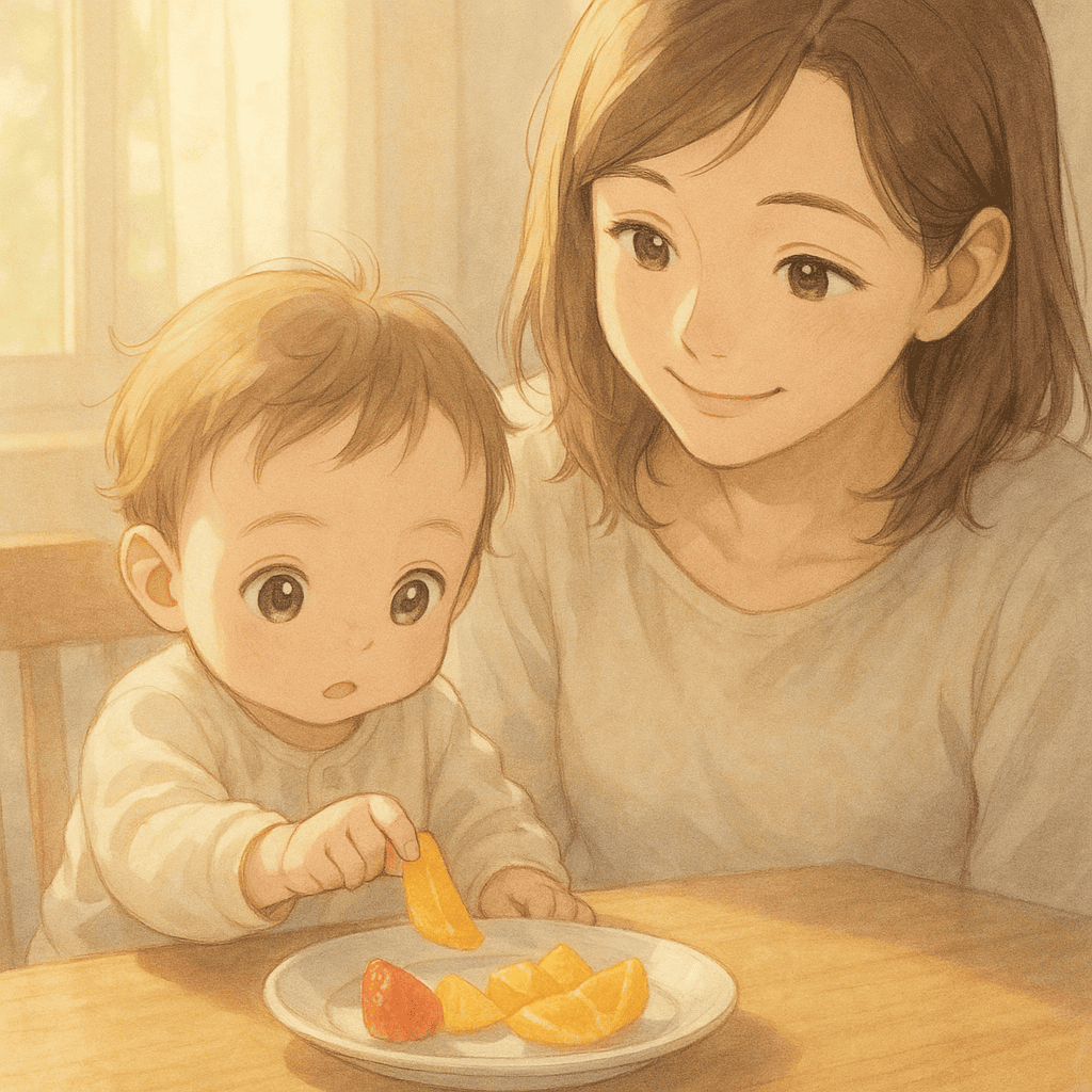 너무 소중한 순간이네요! 아기의 손끝이 음식을 집어 입에 넣는 건 단순한 동작이 아니라 성장의 증거입니다.