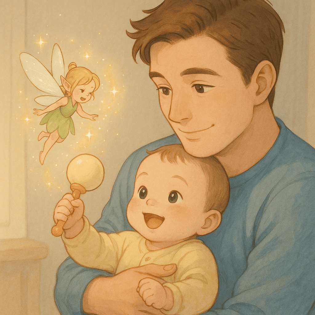 아기는 방긋 웃으며 딸랑이를 흔들었고, 요정은 반짝이는 빛을 흩뿌리며 춤을 추었답니다.