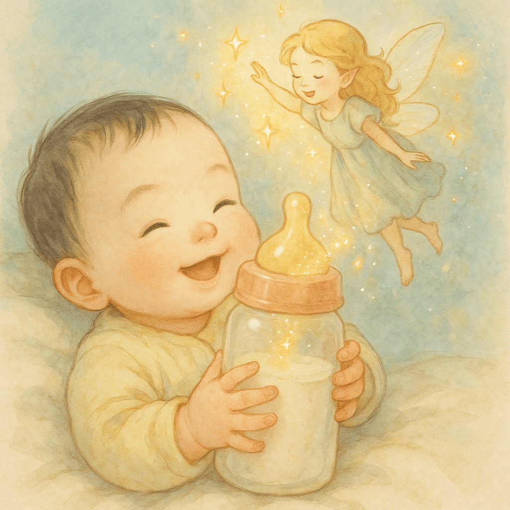 아기는 방긋 웃으며 한 모금을 삼켰고, 요정은 별빛 가루를 흩뿌리며 속삭였답니다.