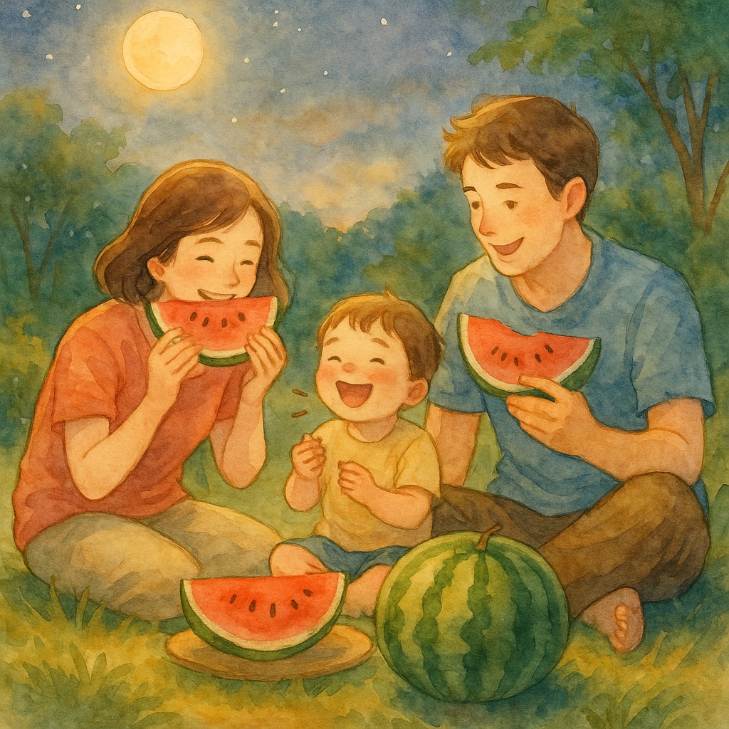 달빛 아래, 수박 향기와 아이 웃음소리가 뒤섞여 오늘 하루가 참 잘 익었다는 생각이 들었답니다.